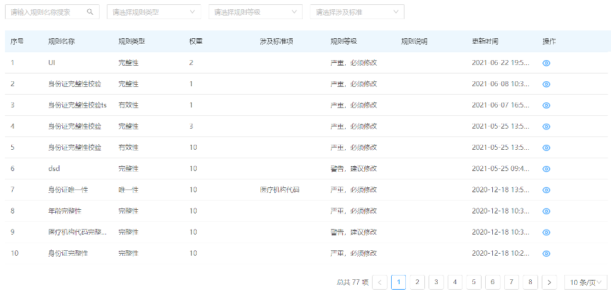 美創(chuàng)數(shù)據(jù)質(zhì)控平臺支持采用零編碼方式完成規(guī)則定義,通過可視化界面,普通用戶即可完成規(guī)則的增-刪-改-查,定義結果清晰易理解,需求變動和人員變動影響甚微。