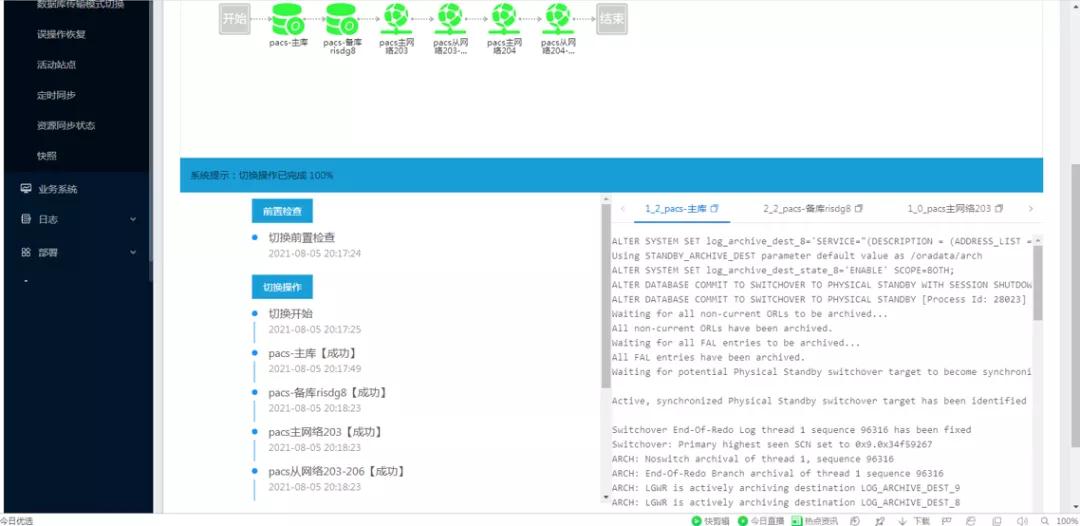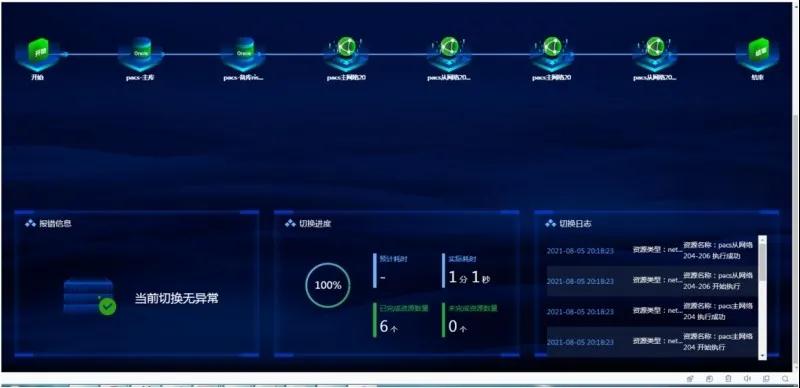 針對中國科學院大學附屬腫瘤醫院核心HIS/EMR、LIS、PACS三套數據庫均在3分鐘以內完成業務切換使用。