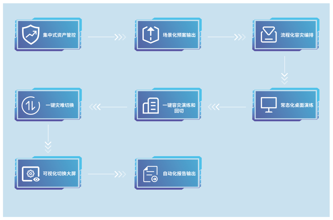 · 計劃內或滿足上級監管部門考核的容災演練能力,在保證數據零丟失前提下,驗證災備可用性,通過模擬容災切換實戰的演練過程。