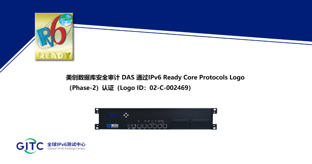 美創數據庫安全審計DAS通過IPv6 Ready認證,標志著產品的IPv6核心協議實現已全面符合IETF RFC相關標準,其一致性和互通性得到了權威驗證。