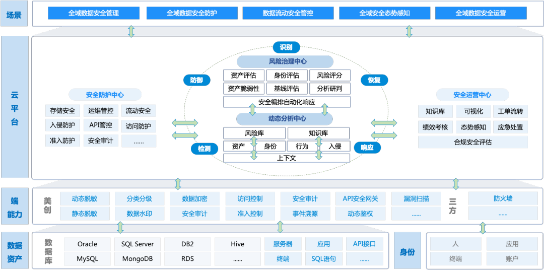對數據進行綜合管理,實現基于分類分級的統一資產梳理、統一身份治理、統一風險監測、統一分析評估、統一策略下發、統一風險管控、統一觀測等,真正幫助用戶構建全局的體系化數據安全。