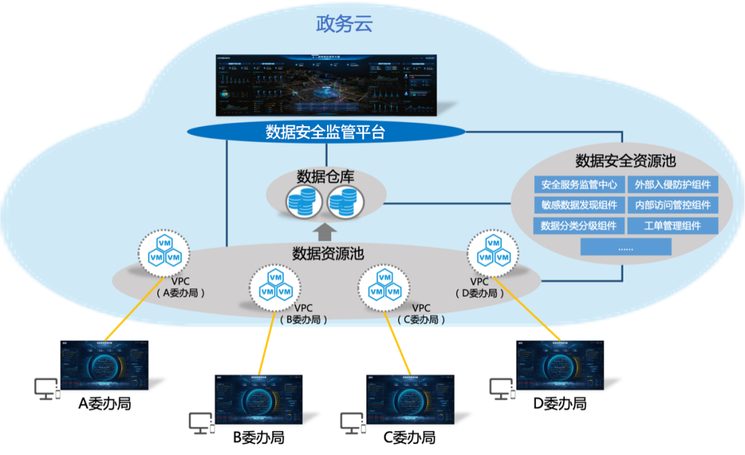 基于數(shù)據(jù)安全監(jiān)管平臺(tái)“多租戶”模式,既保障委辦局間數(shù)據(jù)隔離,又讓安全能力觸手可及: