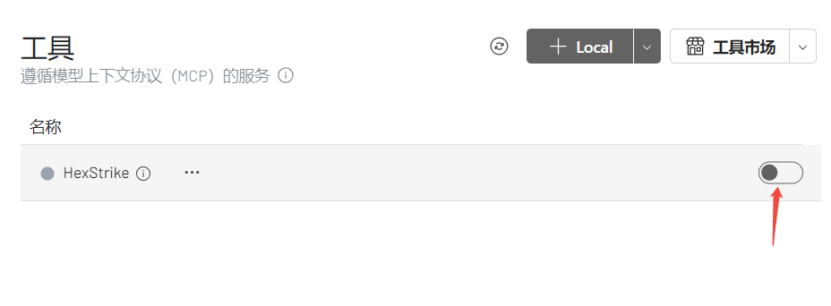 然后開(kāi)始配置工具,主要就是配置命令這一項(xiàng),需要配置客戶端python的絕對(duì)路徑、hexstrike_mcp.py的絕對(duì)路徑以及上述MCP服務(wù)端地址,具體命令示例如下