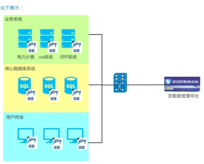 公司目前擁有70余套重要業(yè)務(wù)系統(tǒng)應(yīng)用,主要應(yīng)用和數(shù)據(jù)庫當(dāng)前大都基于windows操作系統(tǒng),windows本身容易暴露漏洞被網(wǎng)絡(luò)攻擊,對于當(dāng)前變種速度越來越快的勒索病毒,更新病毒庫殺毒這種傳統(tǒng)防護(hù)模式更顯得力不從心,存在誤殺誤報、對新病毒后知后覺從而無法有效防護(hù)、本地病毒庫有限造成在隔離網(wǎng)絡(luò)中的弱保護(hù)等痛點(diǎn),所以此次電力系統(tǒng)防勒索建設(shè)需求如下: